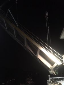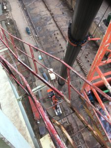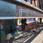 De profielen van de katloopbalken waren dusdanig ingesleten dat deze vervangen dienden te worden, voordat ze onder de norm zouden komen. Hiervoor moest de complete giek worden gedemonteerd. Nadat eerst alle oude bekabeling losgekoppeld was, is de giek uitgehesen en op onderstoppingen op de grond geplaatst. Daarna zijn de profielen van de katloopbalken aan de onderzijde van de giek vervangen. Dit vereiste het nodige vakmanschap. Nadat deze vervangen waren is de giek compleet opnieuw geconserveerd teruggeplaatst, opnieuw bekabeld en getest. Deze operatie kon met de nodige voorbereiding binnen 3 weken worden uitgevoerd.